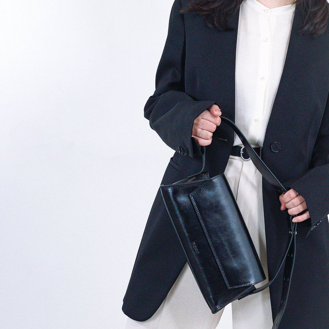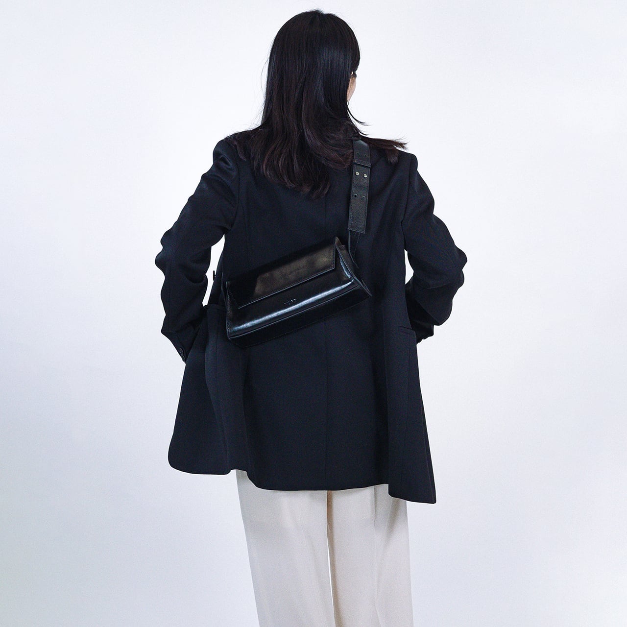 ショルダーは長さの調節が可能で、スタイリングに合わせてコーディネートが可能です。
